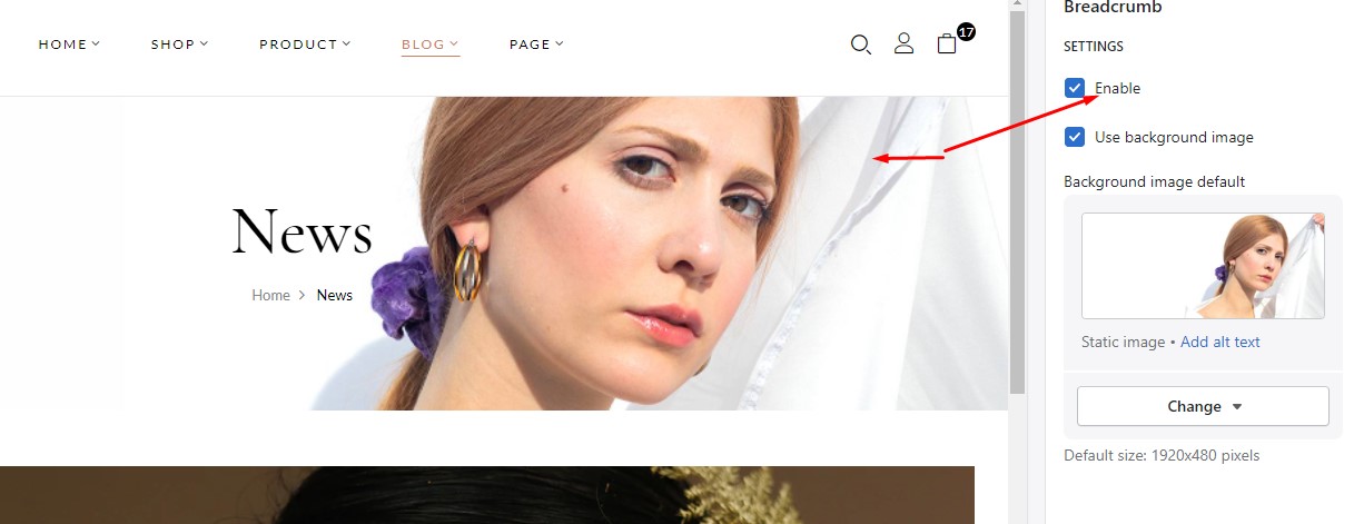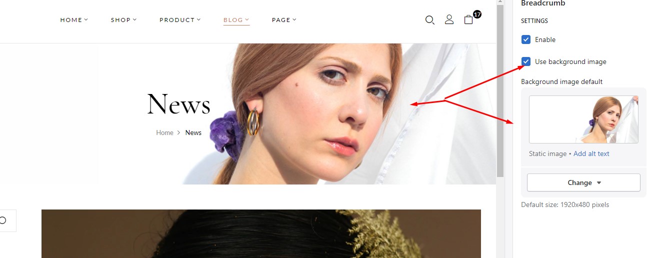 2. If you want to use images for breadcrumbs. You can choose Use background image then enter an image for the breadcrumbs