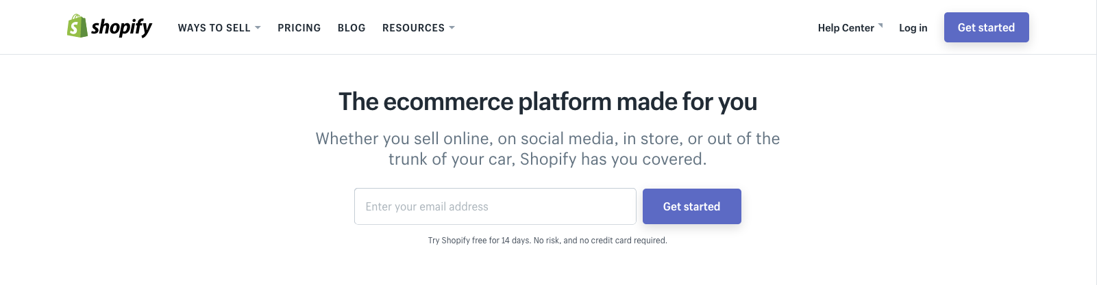 You can start free trial with Shopify. Click the image below Start your free 14-day trial of Shopify